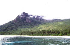the harbour and Pointe Ramasse Tout. The hut in the lagoon are the remains from